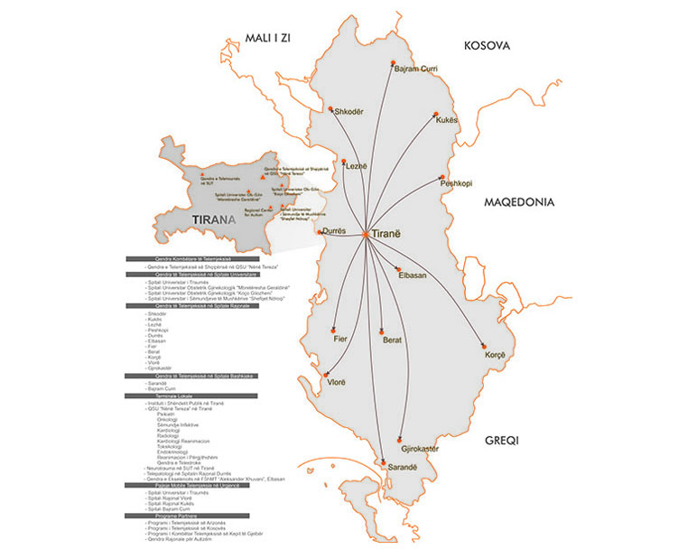 Programi i Integruar i Telemjekësisë dhe Shëndetit Elektronik i Shqipërisë (PITSHE-SH), i përbërë nga një rrjet qendrash kombëtare dhe rajonale.